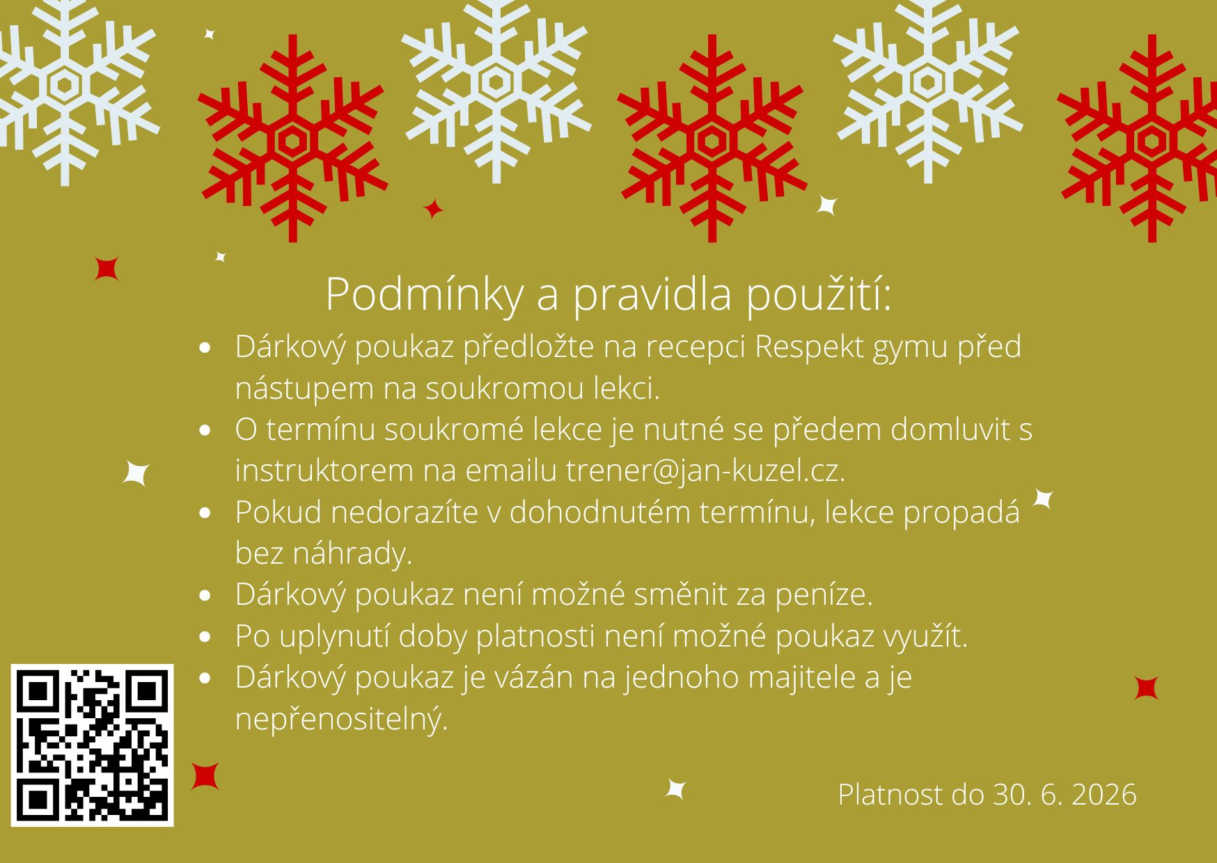 - Dárkový poukaz předložte na recepci Respekt gymu před nástupem na soukromou lekci.